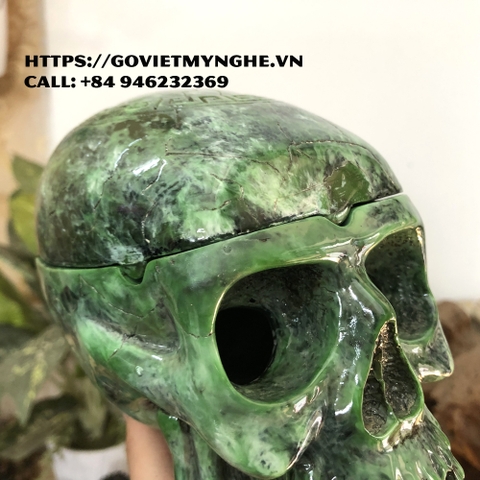 Tượng đá trang trí hình đầu lâu - Gạt tàn thuốc trang trí hình Đầu Lâu - Màu xanh lục bích - Size Lớn Dài 16cm