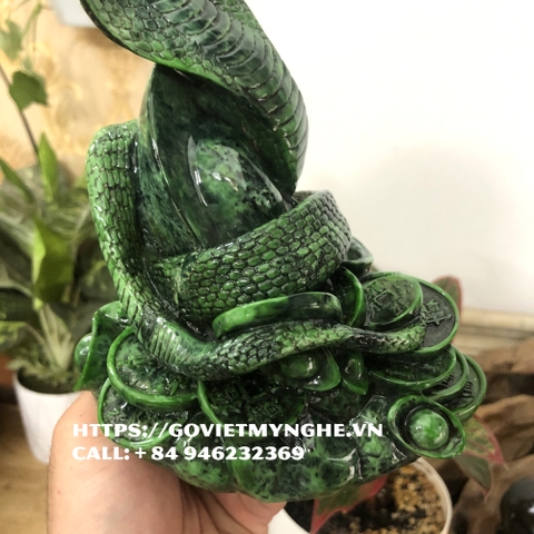 Tượng đá trang trí phong thủy tượng con Rắn ôm tài lộc phong thủy bàn làm việc - Chiều Cao 16cm - Màu xanh lục bích