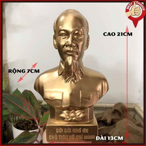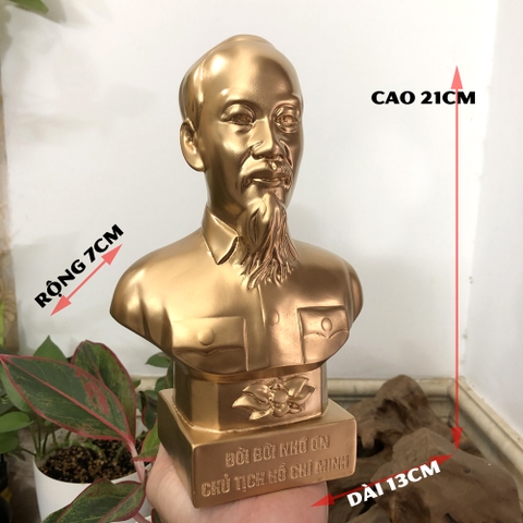 | Model | Tượng đá trang trí tượng chân dung bán thân Bác Hồ Chủ Tịch Hồ Chí Minh trang trí phòng làm việc-Cao 21cm - Màu nhũ đồng |