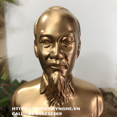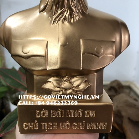 Tượng đá trang trí tượng bán thân Bác Hồ Chủ Tịch Hồ Chí Minh - Size Lớn Cao 21cm - Màu nhũ đồng