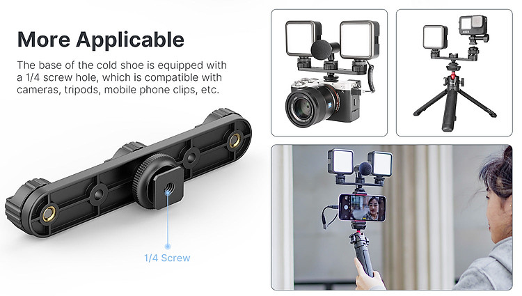 Giá đỡ Cold Shoe Mount lắp đặt cho đèn led, micro, có thể được điều chỉnh xoay 180°