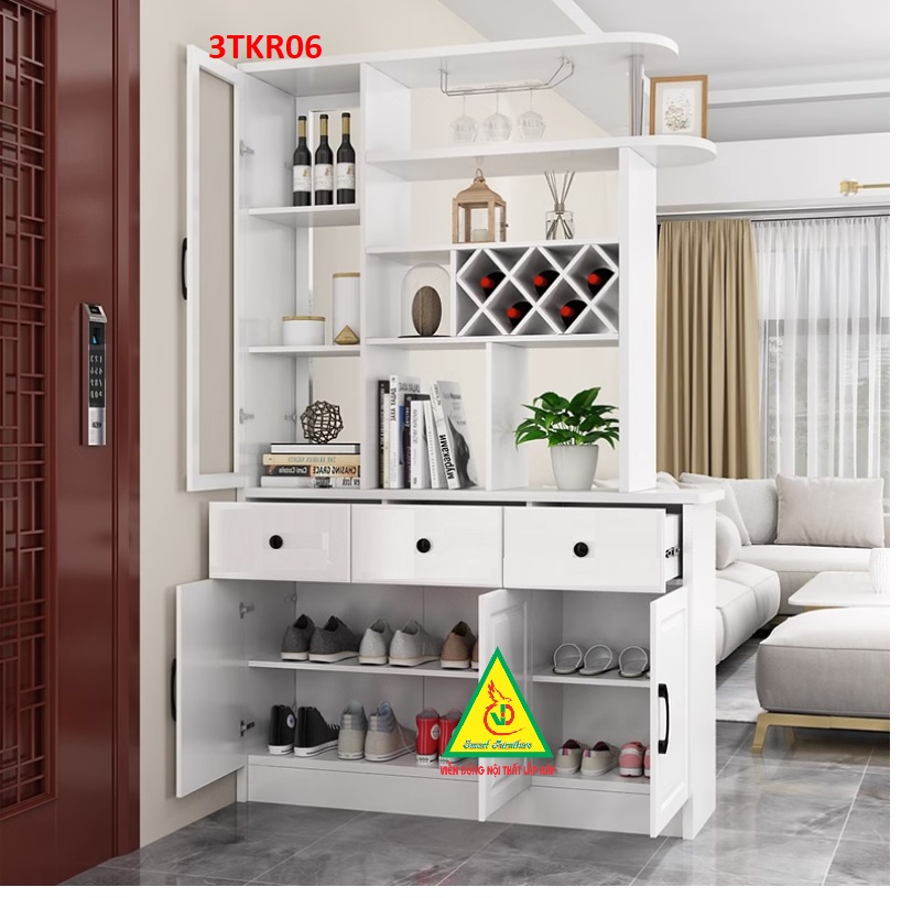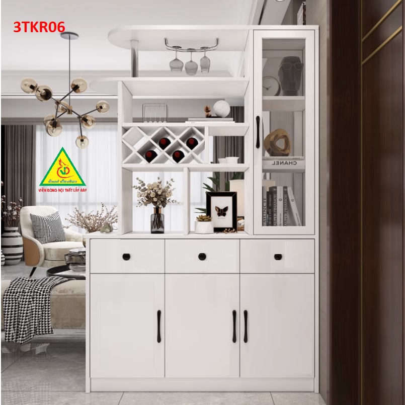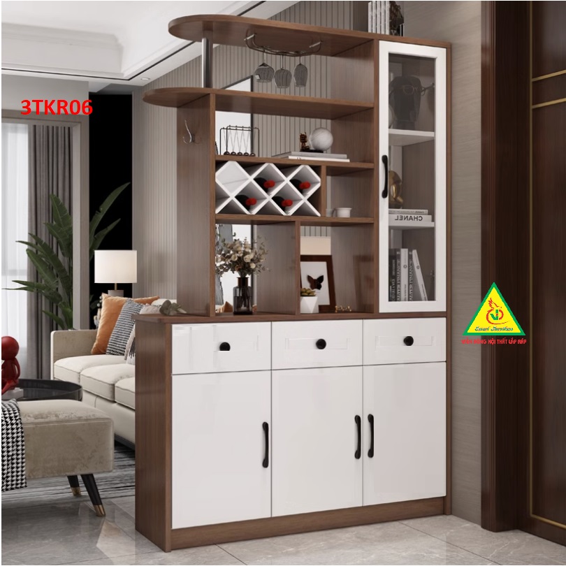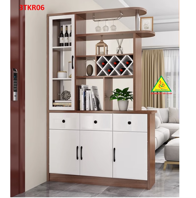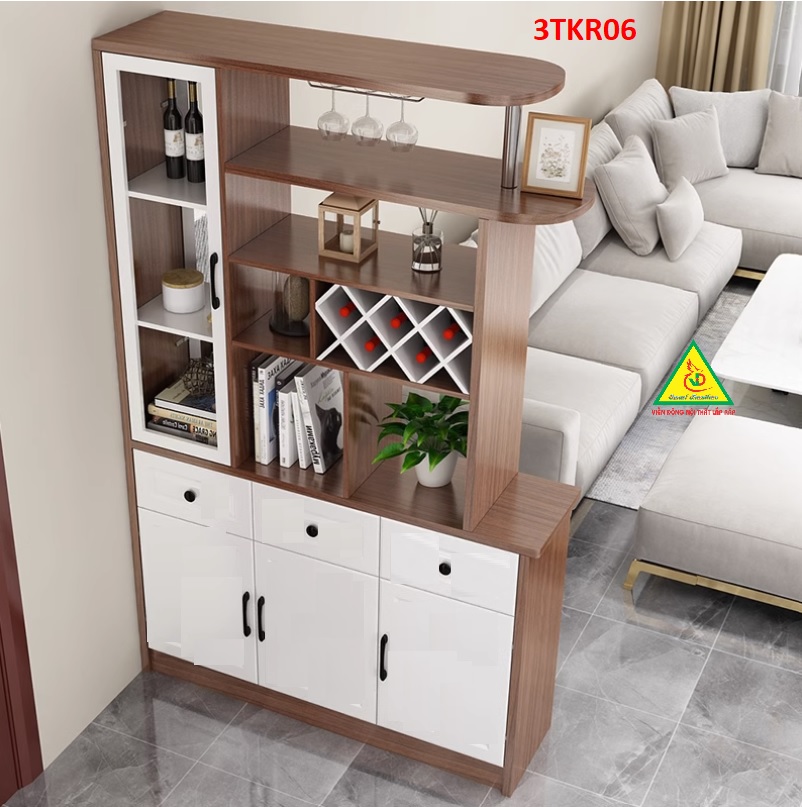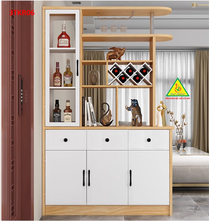 Nó kết hợp chức năng chia phòng, trưng bày rượu và tạo điểm nhấn thẩm mỹ, mang lại sự sang trọng và sự hoàn thiện cho không gian trang trí của bạn.