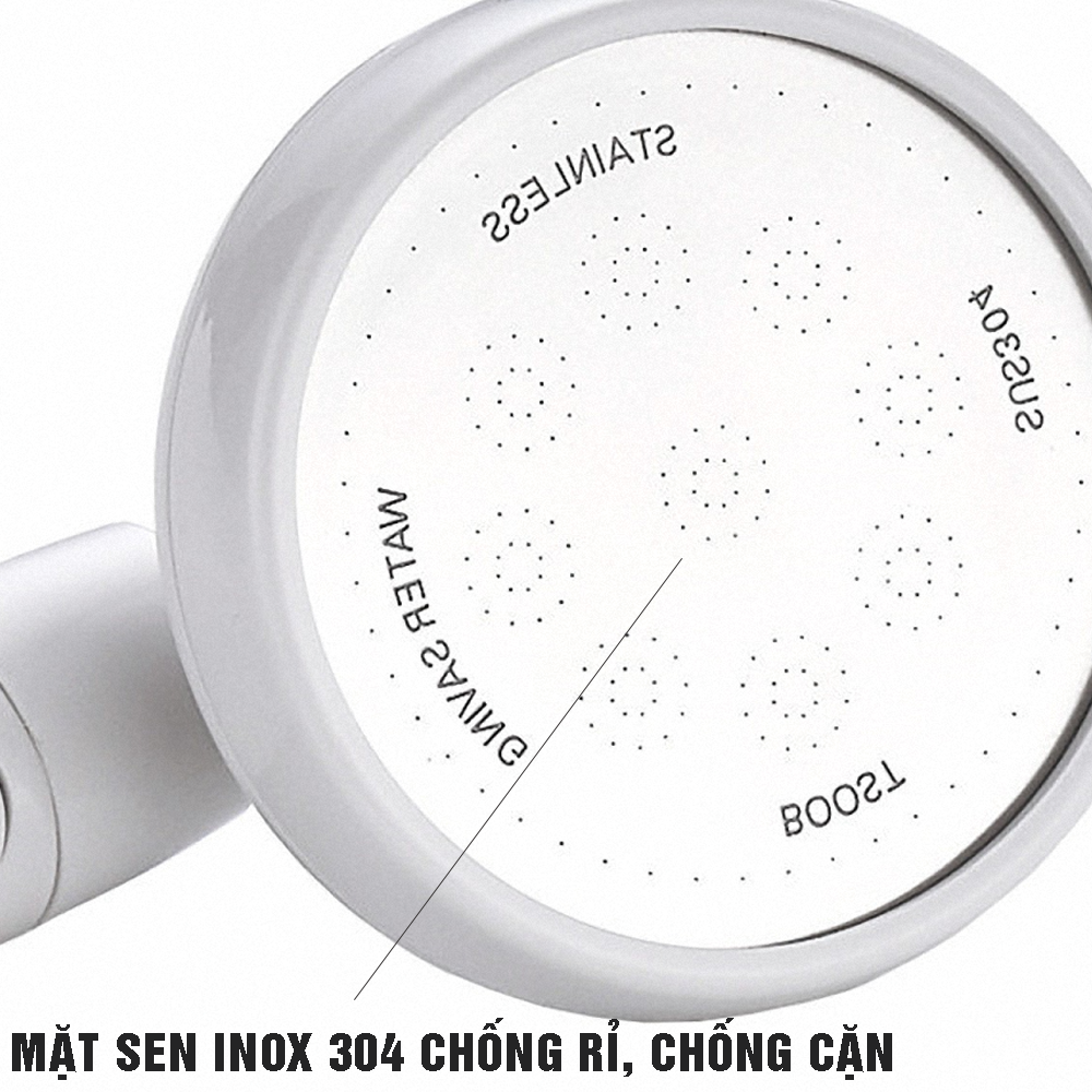 Chất liệu: Thân nhựa PVC nhẹ cực bền, chống va đập, mặt sen bằng Inox 304 chống cặn, không han gỉ.