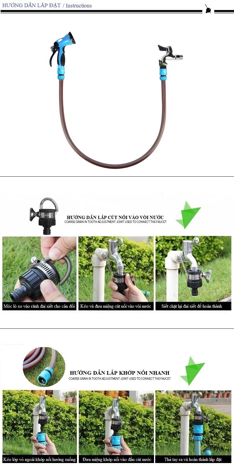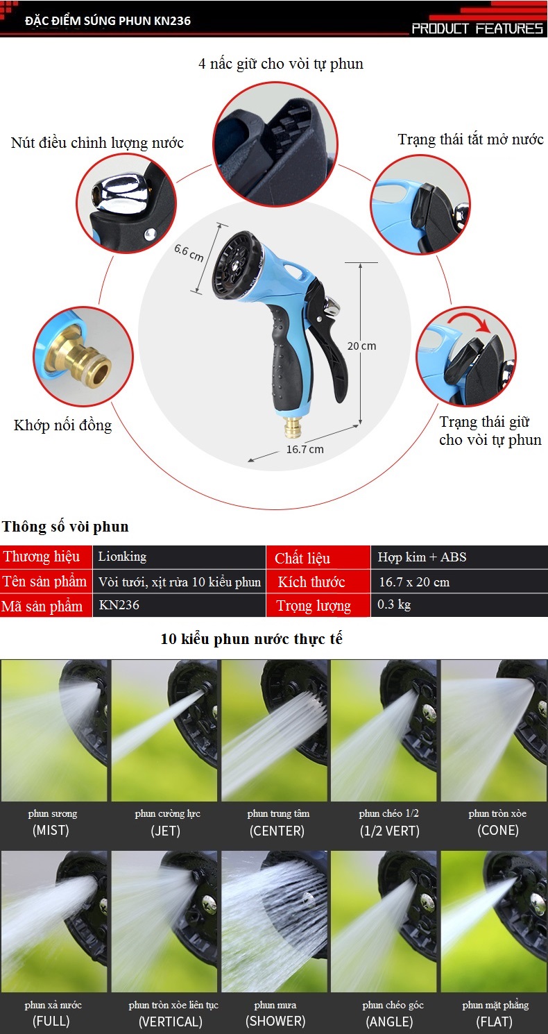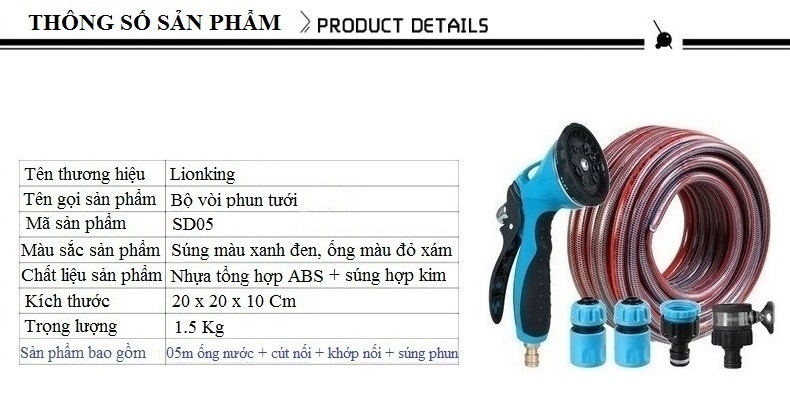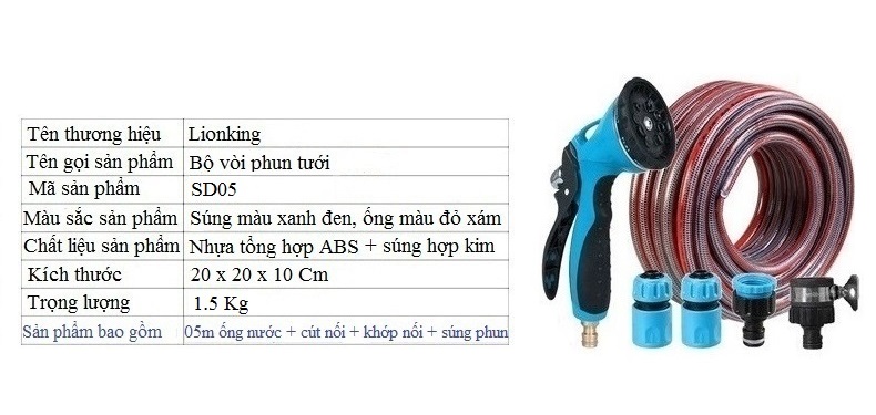 Việc rửa xe, tưới cây, phun xịt vệ sinh nhà cửa của bạn sẽ trở nên cực kỳ đơn giản, nhẹ nhàng. Ống nước Lionking TGS125 có kết cấu 5 lớp, không bị gập, không bị xoắn trong quá trình sử dụng. Vòi xịt nước được làm bằng chất liệu hợp kim có độ bền cao, sử dụng dễ dàng, có thể điều chỉnh nhiều kiểu phun nước khác nhau.