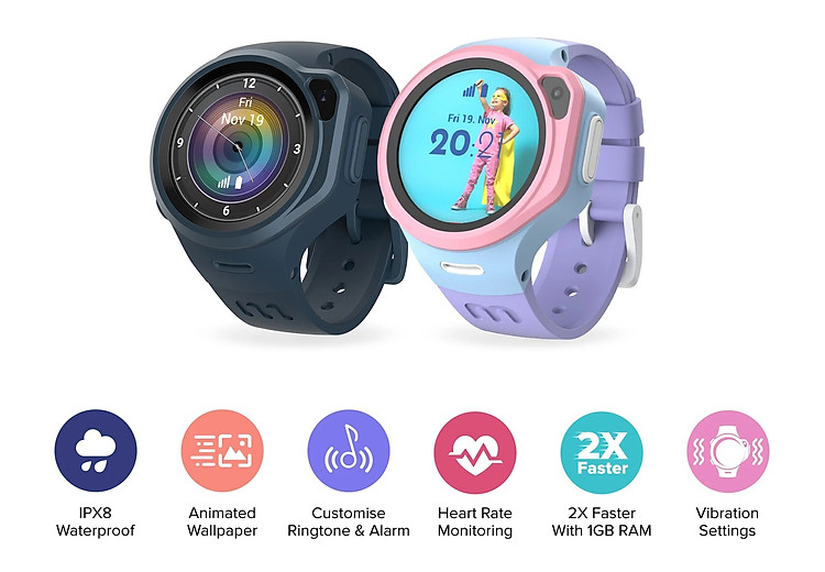 Việc tích hợp khả năng kết nối 4G cùng với camera 2MP mang đến cho phụ huynh và các bé có những cuộc gọi nhanh chóng và mượt mà. Nhờ vào tính năng này mà bố mẹ có thể ở bên cạnh các bé mọi lúc, mọi nơi. Chỉ với một mức giá tầm trung nhưng chiếc đồng hồ này có nhiều tính năng có thể thay thế một chiếc smartphone.