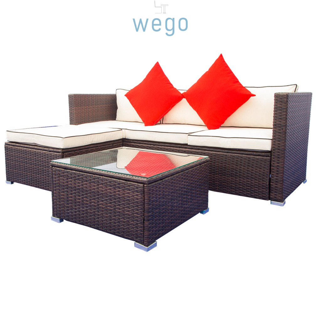 * This poly rattan sofa set come with 1 x table, 1 x single chairs, 1 x bench, 1 x stool, 2 x Pillow and cushion
